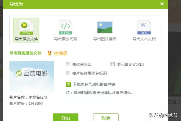 2、方式二:在优芽网-个人中心,互动电影列表,点击导出图标,也可进行导出。
