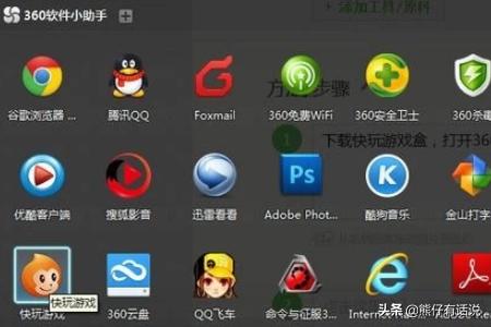 一、下载快玩游戏盒,打开360软件小助手,找到快玩游戏盒图标。