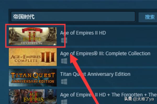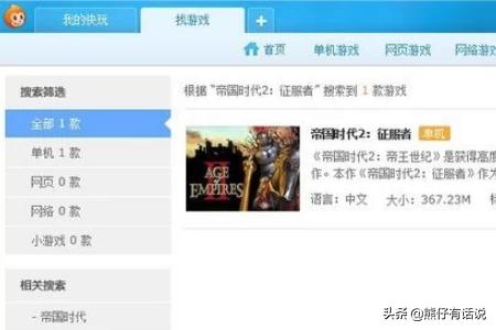 四、搜索出【帝国时代2】征服者]的游戏,找到需要下载的游戏。
